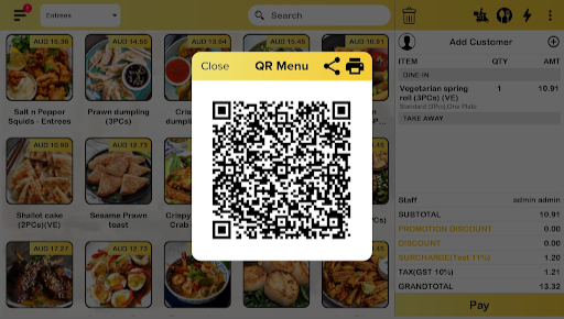 - Navigate to the subcategories, select “Branch” and click “QR Menu”