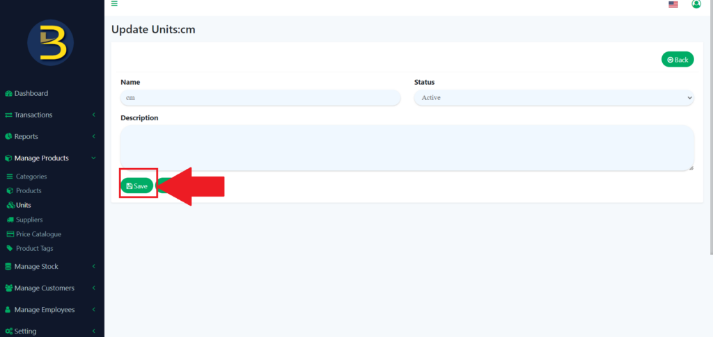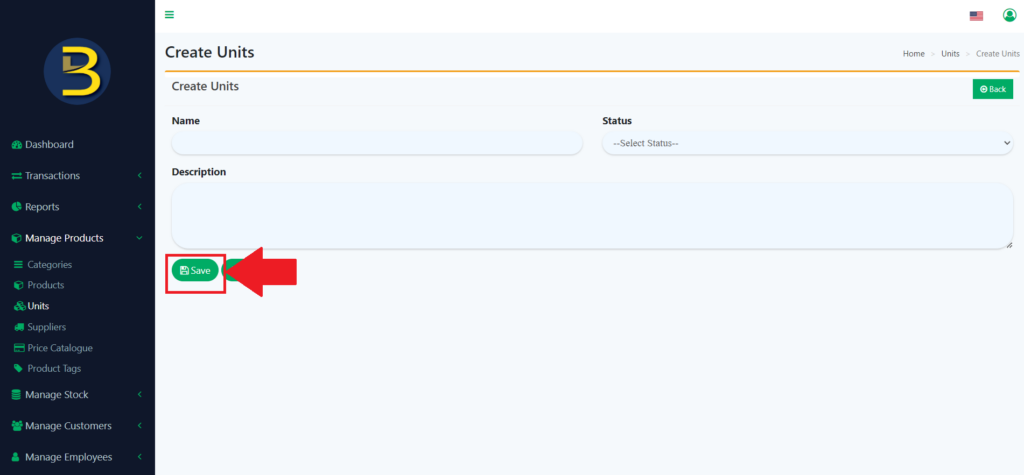 4. Fill in the details of the units and then click the “Save” button to save the units.