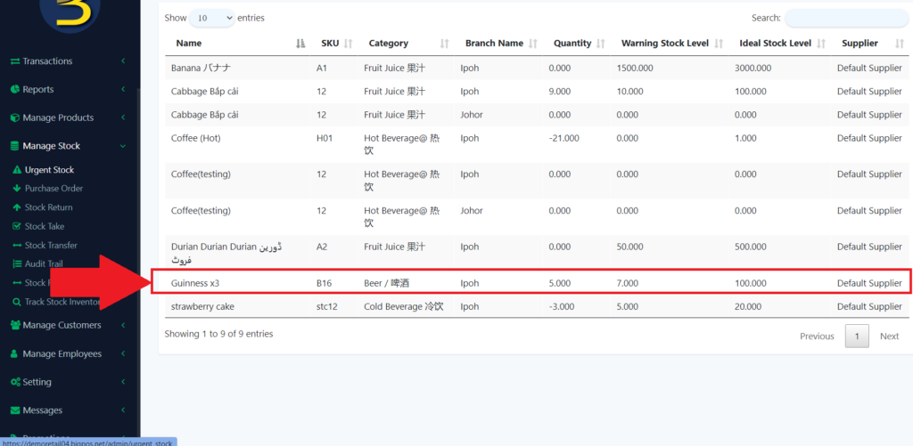 5. Then look for the “Urgent Stock” to redirect to the urgent stock level.