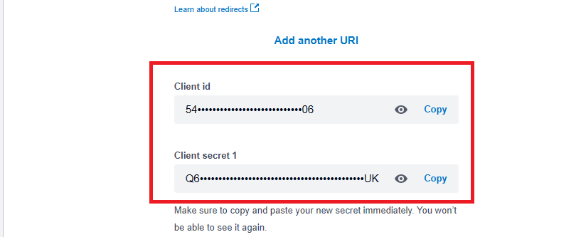 9. Here are the Client id and Client secret data, copy and paste into BIG POS Site and click “Save“.
