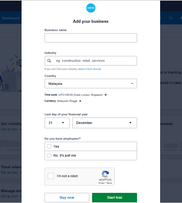 14. Fill in all your data and click on Buy Now or Start Trial.